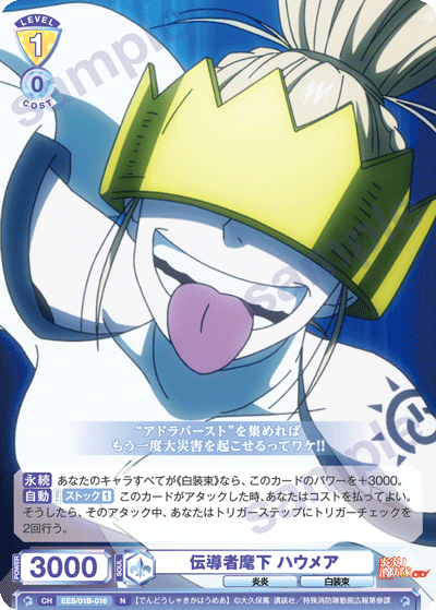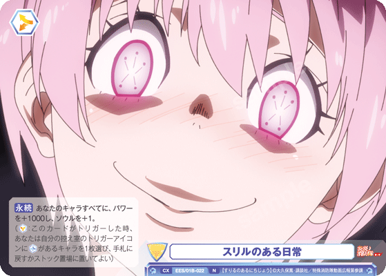 しても1ストックで場に残ることができる能力を持つので、舞台に残りやすいタフなカードです。CXが置かれた時にさらにパワーが上がるため、レベル0ながらレベル1の相手に対しても