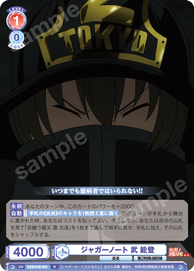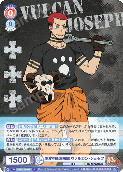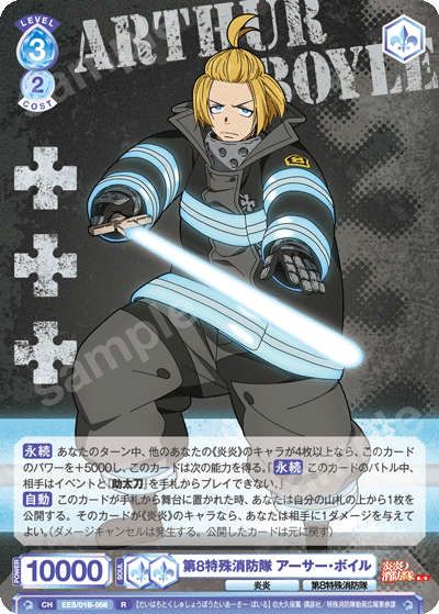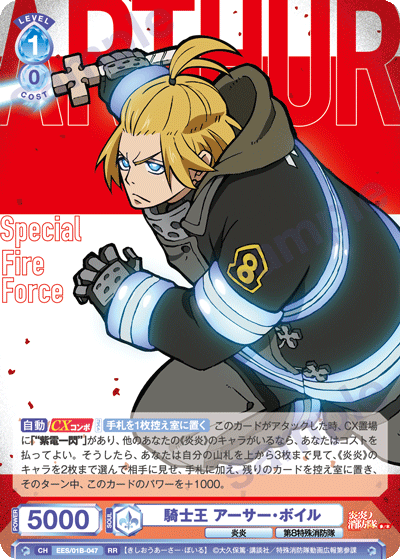 メインフェイズでは、合わせて「第8特殊消防隊 アーサー・ボイル」を登場させるとよいでしょう。舞台に置かれた時に相手にダメージを与える能力を持っているため、CXコンボ以外でも追加でのダメージを狙うことができます。